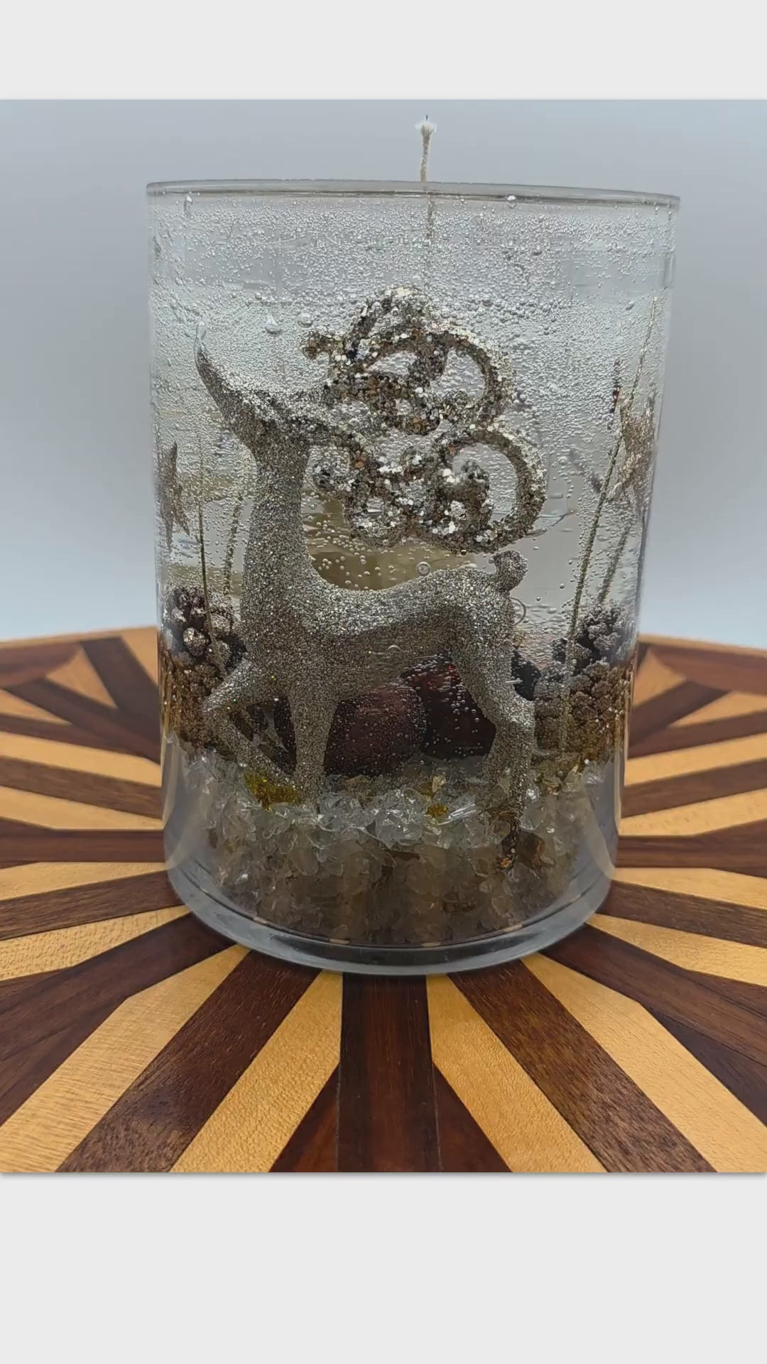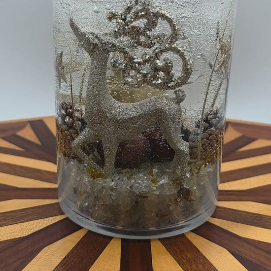 This one-of-a-kind Golden Reindeer candle is handcrafted with shimmering gold accents, winter textures, and a warm seasonal glow.